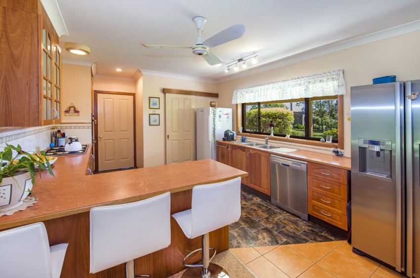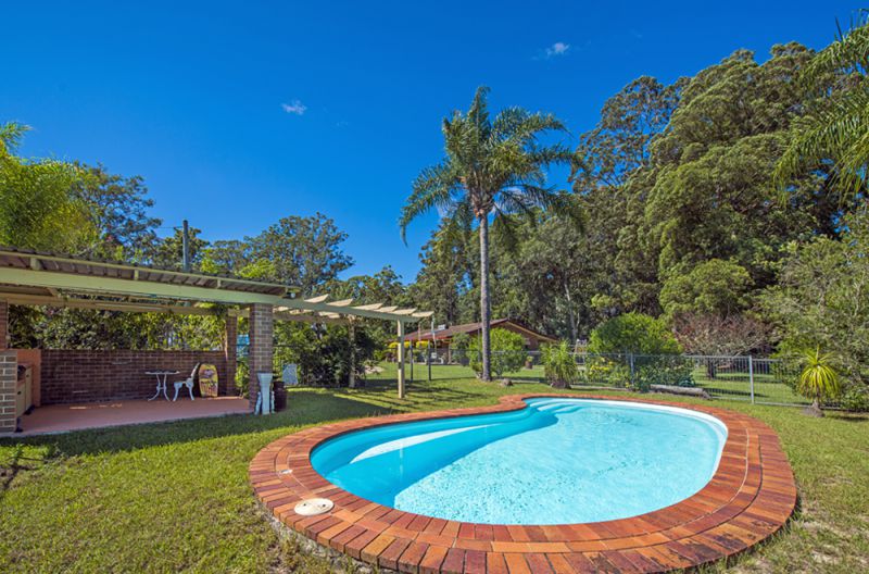 The views are breathtaking, as is the silence, and the cool breezes in the summer months are exquisite. There are acres of lawns and gardens surrounding the house, with a hardwood forest as a backdrop. The inground salt water swimming pool and spa is another attraction. And yet, all of this is only a couple of minutes to a general store, school, post office, etc., and 20 minutes to the business centre of Coffs Harbour and the same distance to some of the best beaches on the north coast.